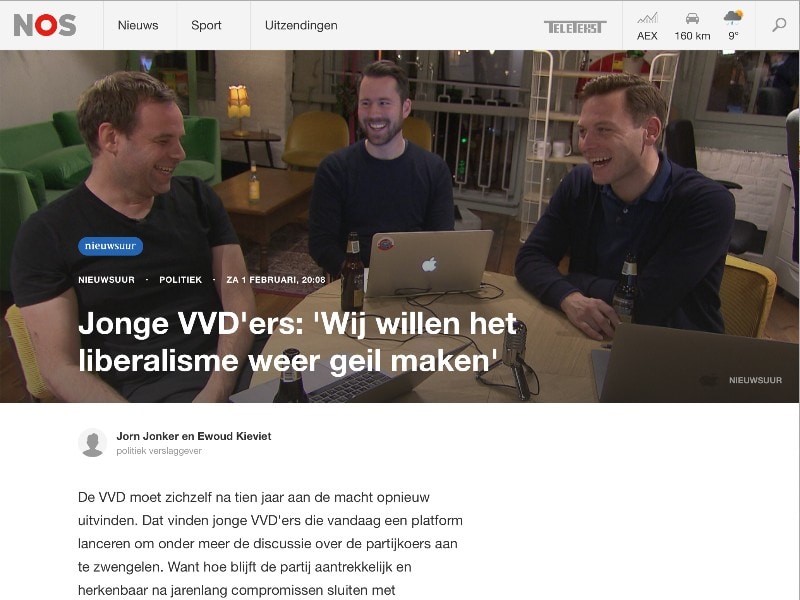 I was in a bit of cheerful mood, so when they asked me what the goal of the podcast was, I blurted out “We want to make liberalism horny again”. One week later, the editors used this quote for the headline of the item. What I didn’t realize at the time of the recording was that the narrative that they wanted to create was a narrative of a new “young” generation that wants to re-shape the Dutch Liberal Party. It was only a matter of hours after the TV item aired, that we got overwhelmed with messages from people within and outside the party. We even heard that “horny liberalism” actually made it to the VVD- party executive meeting. 🙂