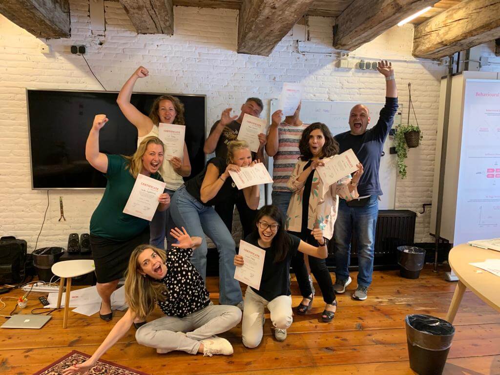 Suppose you want to learn more about how influence works. In that case, you might want to consider joining our Behavioural Design Academy, our officially accredited educational institution that already trained 2500+ people from 45+ countries in applied Behavioural Design. Or book an in-company training or one-day workshop for your team. In our top-notch training, we teach the Behavioural Design Method© and the Influence Framework©. Two powerful tools to make behavioural change happen in practice.